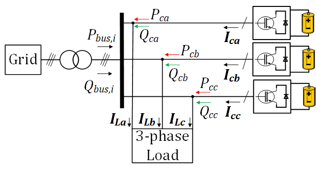 Abstract: The increasing penetration of single-phase equipment in the distribution system, such as photovoltaic (PV) inverters and electric vehicle (EV) chargers, may cause an increase of voltage unbalance levels, thus leading to detrimental effects on the distribution system and the equipment connected to it. This research work aims to control single-phase battery energy storage (BESS) units to mitigate unbalance conditions.